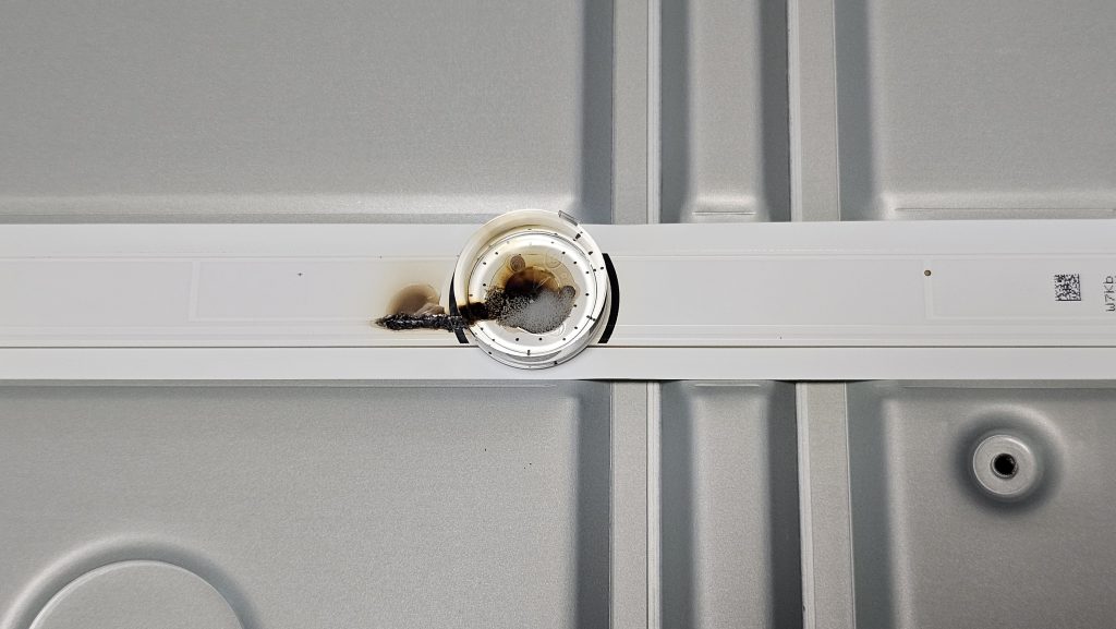 확인 결과, 백라이트 모듈 1개가 완전히 전소되어 있었습니다.