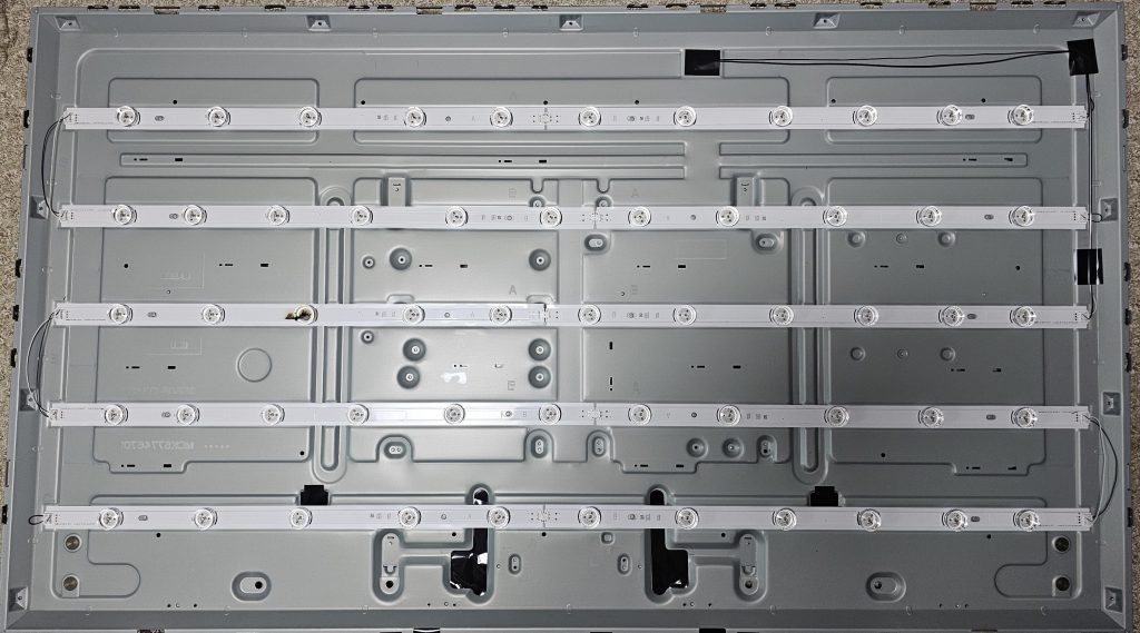 - 조치 내용: 노후 백라이트 전체 탈거 후 LG 55LF6500 전용 신품 LED 백라이트 바 설치.